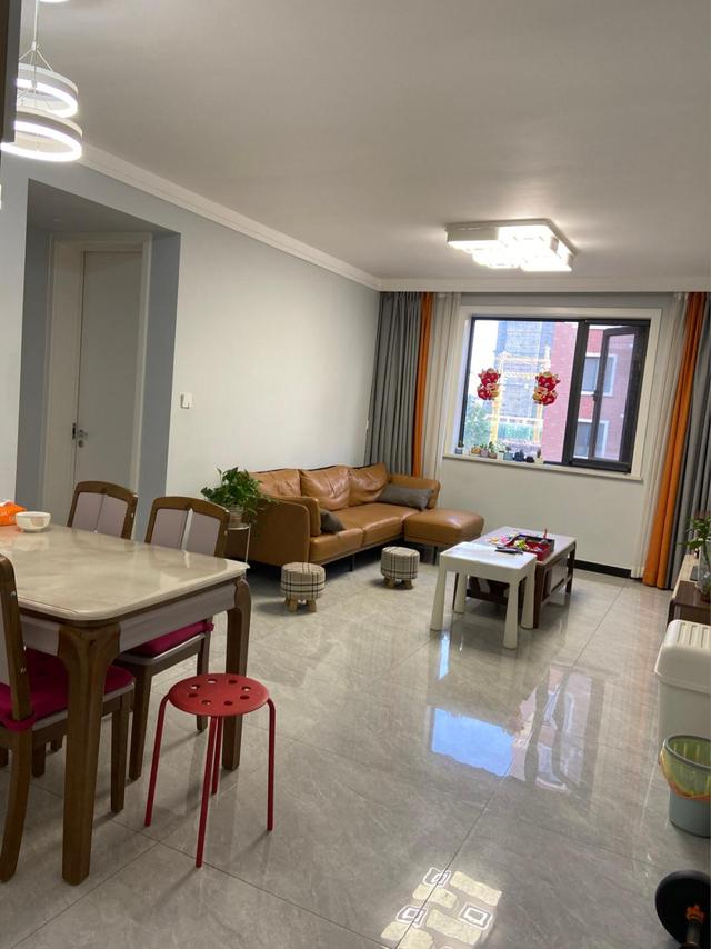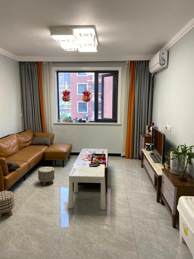 小户型的房子,客厅没有阳台,但是有个窗户还是蛮不错的哈。没有做电视墙,直接就是使用原墙,如果当初做电视墙了,其实觉得更不好了看。反而这样的效果简简单单不容易过时,真心不错,很值得学习啊。家里有小孩,地面也要每天擦洗干干净净,可以说一点灰尘都没有。虽然没有安装吊顶,但是做了窗帘盒,真心不错。安装了双色的窗帘,看着没有那么单调。