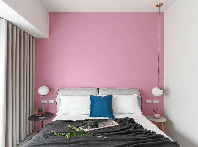 卧室最亮眼的不是粉红背景墙,而是入墙式推拉门,保证了空间的整体性,显得小家又高而开阔。
