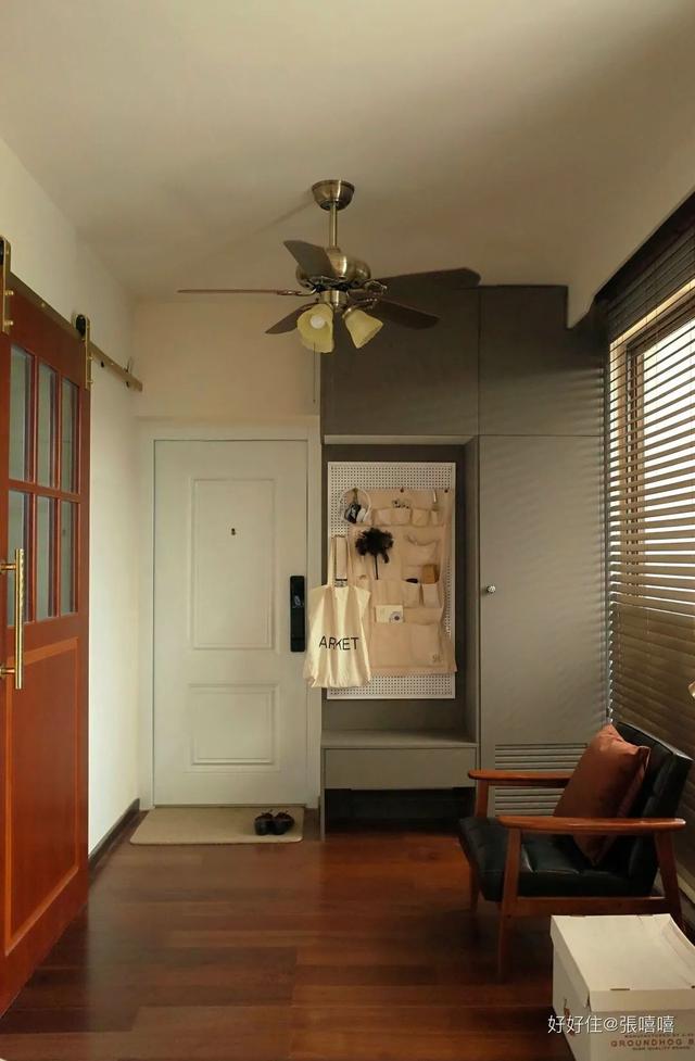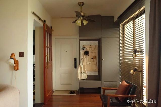 对小户型来说,每平米都肩负着重要的使命,不论是玄关还是厨房客厅、衣帽间,为极致利用各处犄角旮旯,他家全屋柜子基本都是整体设计↓
