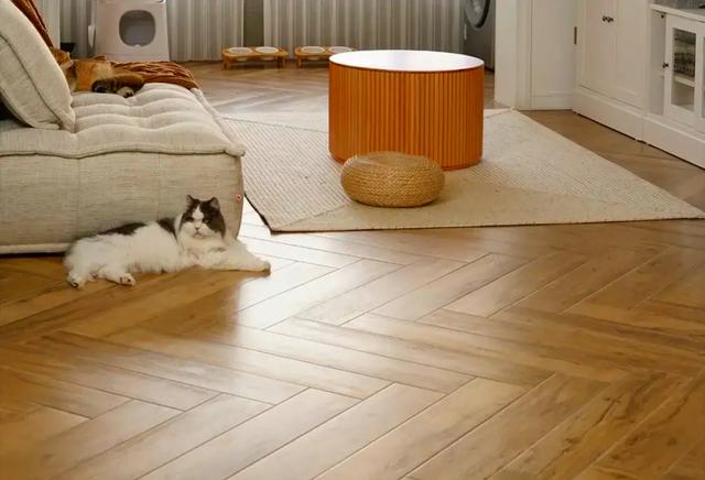 ▲木纹砖而且,也同样可以使用木纹砖做“人字拼”的造型,除了脚感,其它的几乎和木地板没有多大的区别,绝对是“木地板控”的最佳选择。