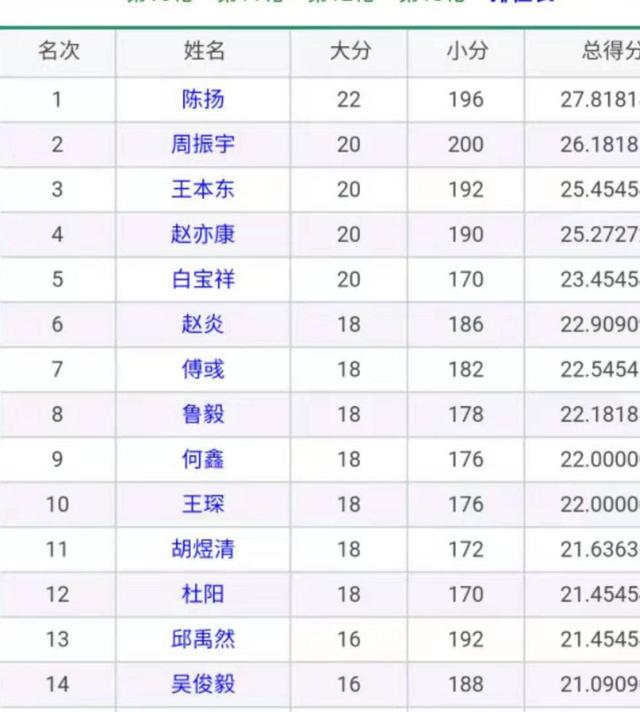 而周振宇目前小分领先4分,如陈扬落败,周振宇获胜,双方大分打平,到时候就看小分命运了,周振宇小分较高,仍有可能在最后一刻实现反超。但目前领先的4个小分也绝不保险,双方小分同分的话,陈扬也会因为双方胜负关系而惊险夺冠。