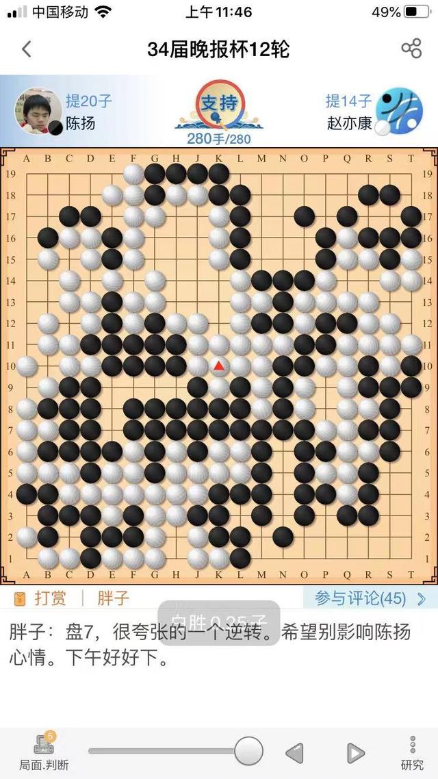 晚报杯刚刚结束第十二轮。陈杨面对唾手可得的胜利视而不见,遭到半目逆转。