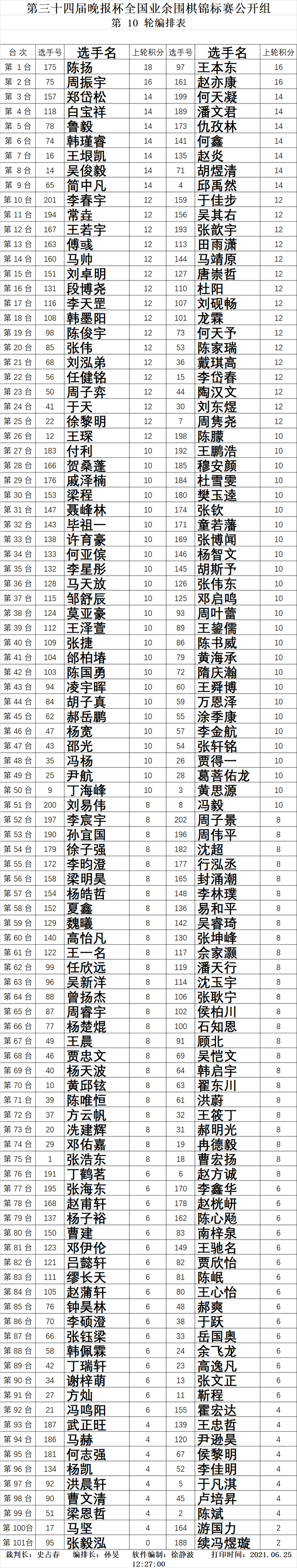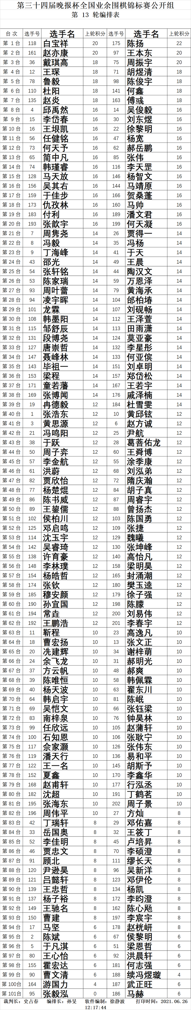 第13轮对阵表: