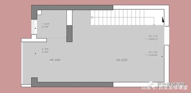 - ▲原始一楼图纸,进门右手就是楼梯,左手一个大开间,一个封闭的卫生间,厨房管道与卫生间并列,而且厨房刚好在唯一采光最好的窗户位置  - ▲原始二楼空间,两间卧室带一个卫生间,与一楼厨房相对的地方是挑空区域;两间卧室之间有墙体分割,导致一间次卧完全没有任何光线  - ▲一楼重新规划,改变原有楼梯的位置,移动到进门左手角落,让进门口更宽敞,成就动线以及更多收纳;原有一楼卫生间牺牲,改变入门位置,做成了厨房空间,原有厨房刚好布局成小的就餐空间;沙发居中布局,让四周动线更加合理.一楼完全作为活动区域布局  - ▲二楼改变楼梯位置以后,同样位置成就了收纳柜定制,打掉了两间卧室的隔墙,让光线通透,同时原有次卧位置刚好作为办公区域布局  - ▲一楼进门看到的全景,楼梯改动到左手拐角,成就进门右手的收纳定制,分别成就了鞋柜以及收纳柜储物布局;沙发采用居中设计,让四周动线更加通畅