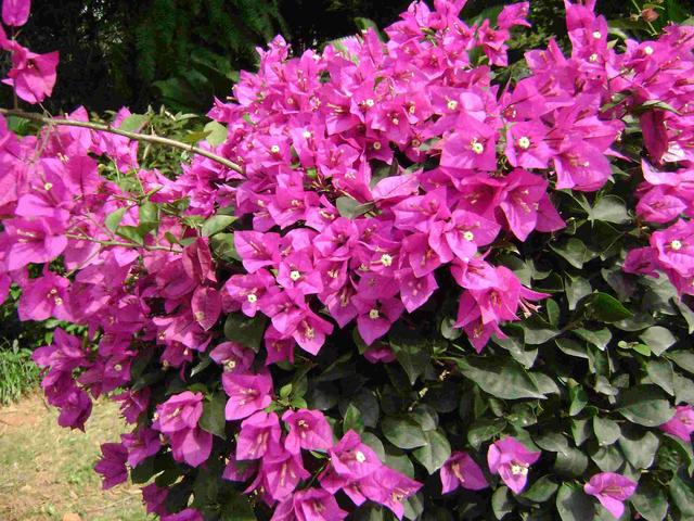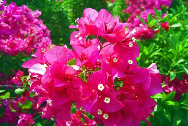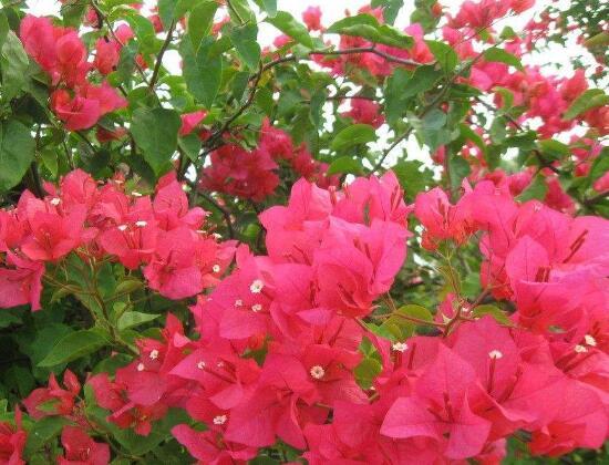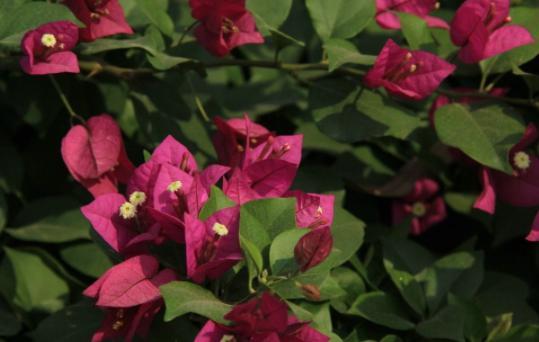 - 别人家的三角梅真是让人艳羡啊,而自己家栽种的三角梅,根本就是只见叶不见花,开花困难。那么是什么原因造成的这种现象呢?其实三角梅的养护有许多小技巧,尤其是在炎热的夏天,你只要做好了4件事情,那三角梅就会爆炸式的开花。 - 1,光照 - 有一些花友刚开始养花不久,所以会将许多花卉的生长习性搞不清楚,觉得夏季气温高,对花卉植物的生长都极为不利,会将自家养殖的花卉都搬至阴凉的地方。而地栽的花卉,由于无法移动,只能搭棚