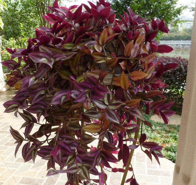 - (1)吊竹梅的繁殖 - 吊竹梅的生长很快,而且容易发根。常用的繁殖方法主要是分株、压条、扦插,都是很不错的。那具体如何来做呢? - 分株:吊竹梅的茎,容易在节处生根,等到生根以后,我们可以剪下来种在其他的花盆里面。 - 压条:把吊竹梅的茎压在盆土上面,然后用土压好,就可以生根了。等生根以后,在移栽的其他的花盆里面就可以。 - 扦插:春夏秋三个季节都可以扦插吊竹梅,剪下5到8厘米的小段,放在水里面,或者是盆土里面,温度在15度左右,15到20天左右就可以生根发芽。  - 吊竹梅的养护方法 - 吊竹梅生长比较旺盛,管理起来比较简单,喜欢疏松排水好的土壤,生长期薄肥勤施,不喜欢强烈阳光照射。 - (1)土壤:吊竹梅对土壤要求并不高,只要疏松透气,排水好就可以,我们可以使用腐叶土、园土、沙混合好的土壤。花盆可以使用透水性透气性好的泥瓦盆。  - (2)浇水:吊竹梅喜欢湿润的环境,生长期的时候让盆土潮湿。如果土壤太过干燥,就容易出现黄叶干叶的情况。夏季除了早上或傍晚浇水以外,还要经常的像叶片和周围喷水,来提高空气的湿度,让吊竹梅的叶片更加的水灵,干净整洁。到了吊竹梅休眠期的时候,就需要减少浇水,让土壤稍微干燥。 - (3)施肥:吊竹梅的需肥量并不高,我们可以根据吊竹梅的生长状态来施肥,在春季吊竹梅刚开始生长的时候,可以隔15到20天左右,施一次稀薄的液肥。在生长旺盛期的时候,可以隔15到20天左右,施一次花多多一号,或者是氮磷钾三元复合肥,必须是稀薄一些的,可以让吊竹梅的叶片更加的鲜亮,开花更多更鲜艳。  - (4)光照:吊竹梅喜欢阳光充足的环境,也能忍受半荫蔽环境,害怕强烈阳光直接照射或者久晒。在吊竹梅的生长期里,阳光都不适合,太过强烈,最好是散射光,否则吊竹梅的叶片容易出现晒伤,叶片也会因为晒伤而变白。 - 还有也不适合长期遮阴,否则枝叶就会徒长,叶片的颜色也会变得没有光泽。我们可以在春天和秋天的时候,放在有充足的散射光的地方。夏季适当遮阴,冬天放在阳光充足的地方。