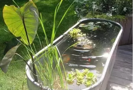 一个用木头包裹的瓦罐也可以是一个美丽的水池