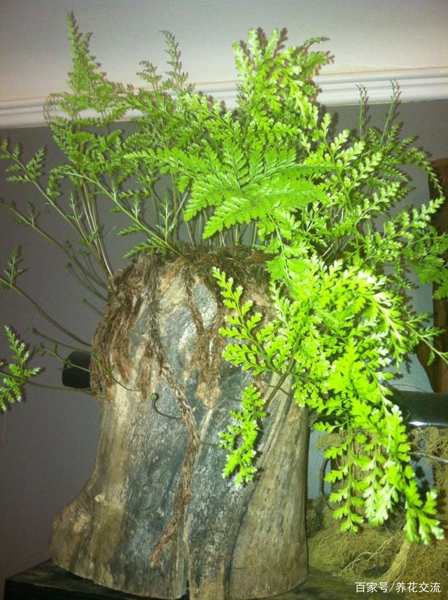 狼尾蕨有时也是可以用来布置植物景观,比如栽种在附山石上,制作成苔藓球盆栽,或者是悬挂在空中养护。