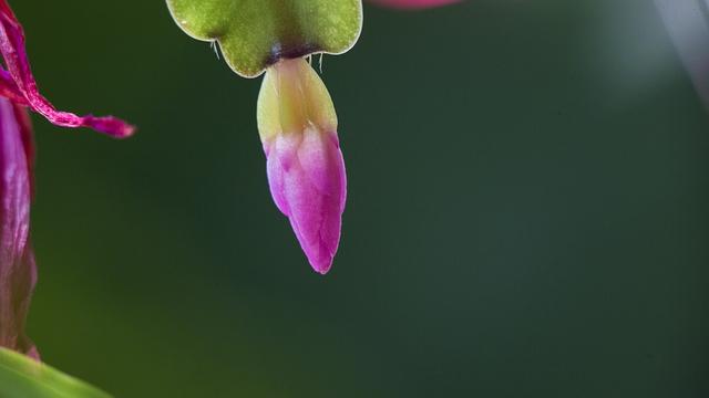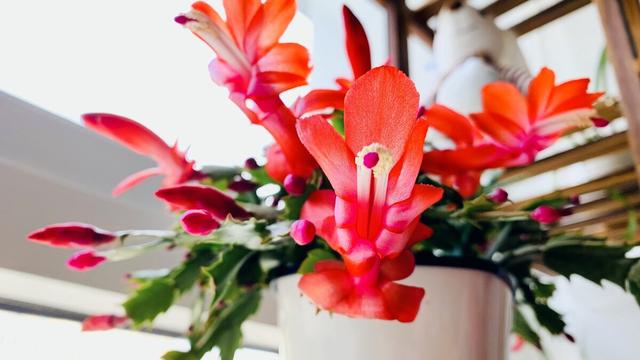 夏天的时候,你要是发现一直正常养护的蟹爪兰有点萎蔫,叶片越来越软,下垂。这就是已经进入休眠期的状态了。这个时候,环境很重要,要把它放在阴凉,通风的地方进行养护,度过休眠期,放好后,就不要动它的,这个时候,它是非常脆弱的,你要是乱动它,说不定会掉叶子。