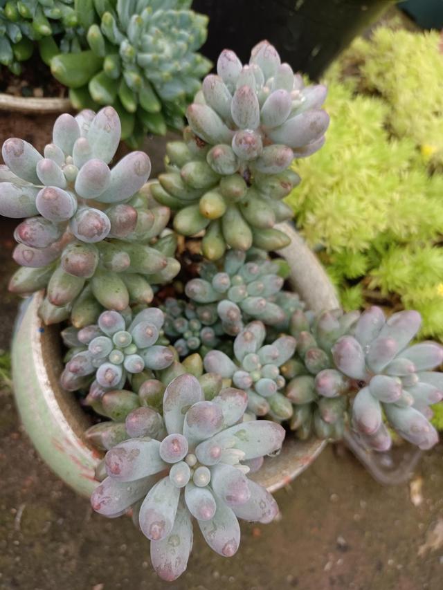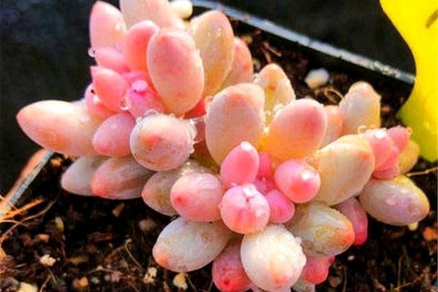 梦巴是景天科青锁龙属的多肉,看起来非常特别的品种,叶片毛茸茸的,出状态后呈现淡淡的粉色,梦巴需要充足的光照才能出现好的色彩,土壤湿一点也不会影响生长,可能是出状态有点难,所以比较冷门,梦巴度夏不难。