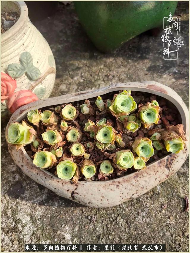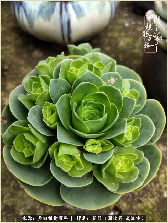 2、玉蝶:景天科,石莲花属。别名:石莲花。原产地:墨西哥。