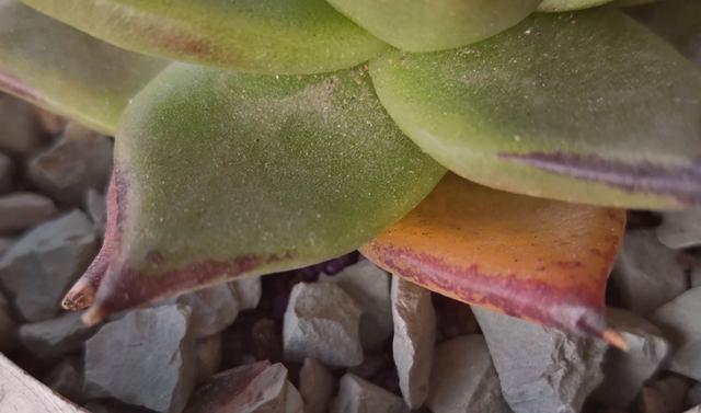 有些多肉的叶片,没有明亮的变化,看起来还比较的饱满,且底部的叶片也没有干枯,这样的多肉乍一看没变化,但若是仔细观察,就会发现,它的叶片有明显的干枯,特别是一些叶尖明显的多肉,比如说乌木系列的多肉,最明显的休眠状态就是叶尖干枯。