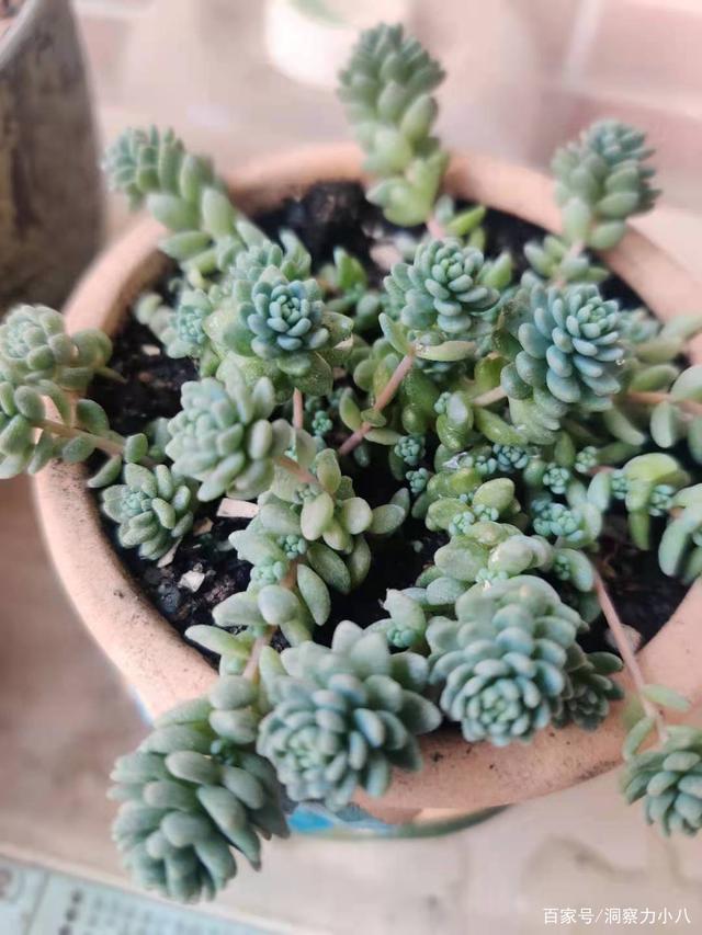 而想让乙女心的状态更好,除了得定期喷洒杀虫剂最好预防工作外,还要注意多控养,它是可以长出老桩形态的,在春秋这两个季节,可以用大水浇灌,让它有徒长的趋势,拉长枝条长度,到达要求之后,再恢复正常养护,甚至延长日晒,延长浇水时间,让乙女心有危机意识,集中养分保护自己,让支杆木质化,后期再通过修剪,自然可以让乙女心长出悬崖老桩的形态。