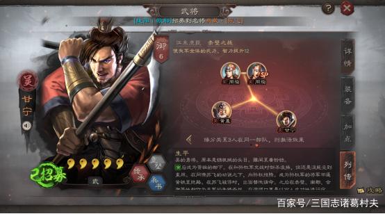 缘分武将:甘宁+周瑜+黄盖