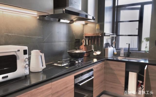 更重要的是收纳只多不少,像一些小家电都能挪到这儿用,也不用担心占了厨房的台面,最好台面上能多预留几个插座,再加上收纳型电视墙,储物空间超足。