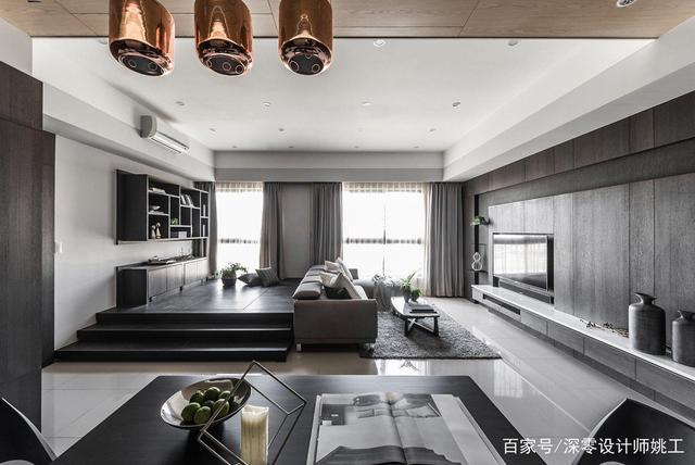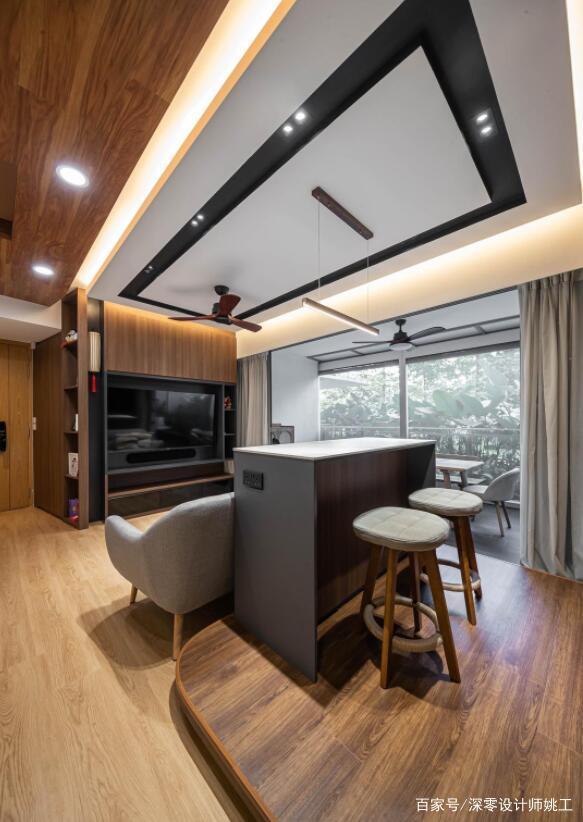 他家很显然在沙发后用地台做抬升,不过毕竟是在室内,不少人担心影响走动,尤其是有小孩和老人,这点个人觉得问题不大,但如果介意的话,咱们能够进行调整。