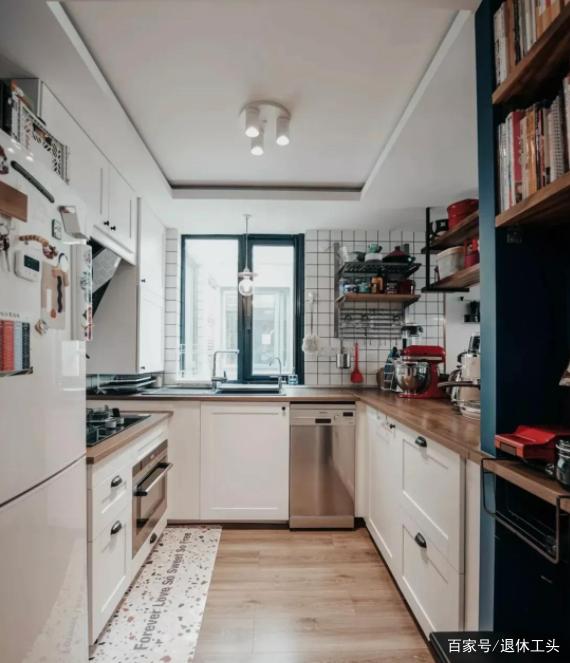 不要书柜就做西厨,面积足够的话,同时满足书桌+西厨也不是什么难事,有些家庭也会只保留书柜,腾出一部分做休闲或练琴区等: