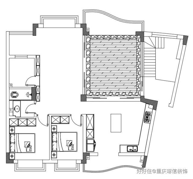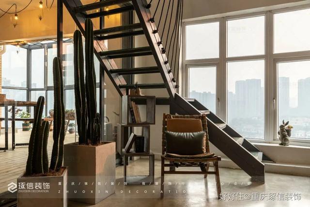 把楼梯换方向改造,让室外的自然光照进来,室内得到足够的采光。