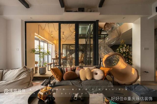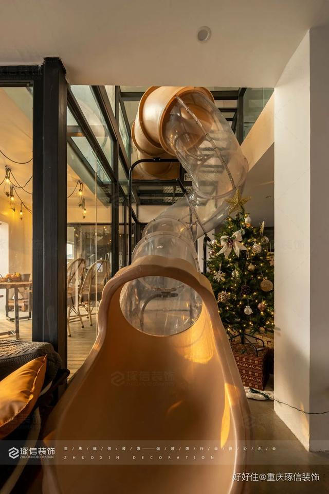 这套260㎡的房子位于重庆渝北,是业主夫妻的婚房,设计师调整了楼梯的方向,提升了室内的采光,并设置了一面超酷的攀岩墙,加上拥有童年快乐的滑梯、无边的泳池、独一无二的星空房,呈现出来的都是他们喜欢的样子!在闲暇的时候还可以和朋友在阳光房喝茶、聊天度过轻松愉快的一下午~