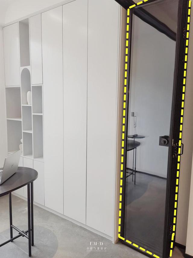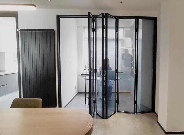 在客厅中辟出一块空间作为书房,安装一扇玻璃折叠门,打开后书房与客厅相连,空间感更加开阔,关上便与外部环境相隔绝,秒变安静思考的空间。