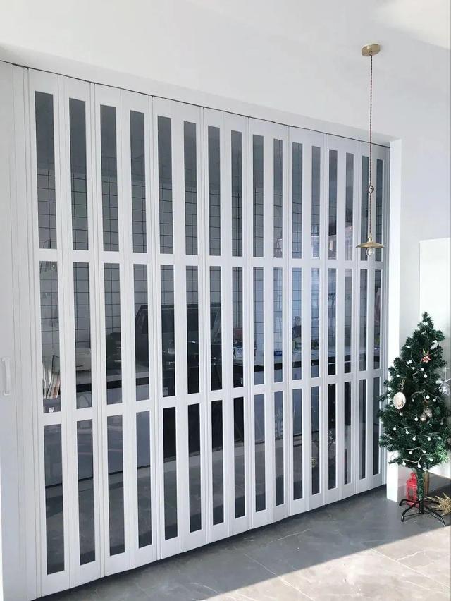 折叠门为多扇折叠,不用时推移到侧边,占空间较少,室内外均可安装,具有分隔空间、通风采光、装饰美化的作用。
