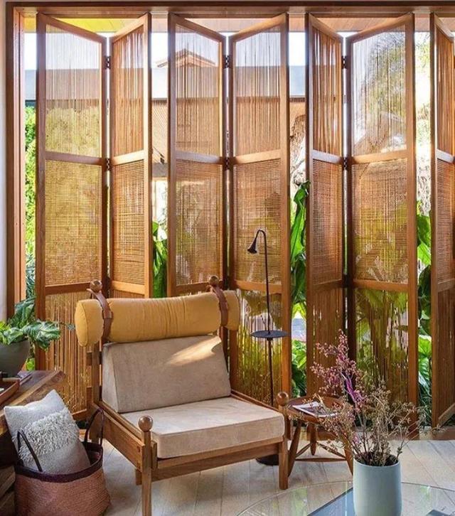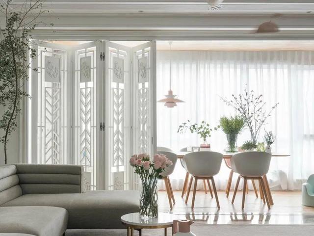 象牙白折叠门以各种镂空花纹修饰,造型唯美,半开半掩间浪漫气息萦绕于室,加上花花草草的助攻,简直是神仙颜值~