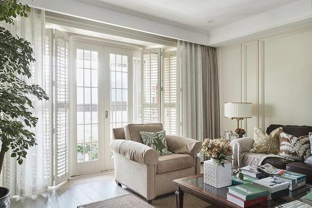 在折叠门前边悬挂一层薄薄的轻纱,打开窗子,纱帘随风飘动,此时此刻风也温柔。
