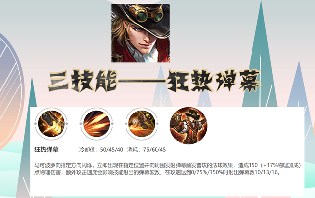 马可波罗的大招是根据当前的速度来计算射出的子弹数量,最多是16颗,而当马可波罗的攻速达到了150%,那么5秒的时间是足够的。
