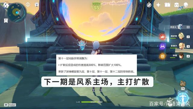 卡池和活动先谈到那儿,之后我还会对其细谈。这里再说一下深渊,下一期的深渊祝福已经出了,是扩散伤害祝福,同时9到12层的怪物阵容也有了一定的调整。第十一层地脉异常调整为:扩散反应造成的伤害提高300%,影响范围扩大100%,对于扩散反应,我想很多小伙伴都和我一样,直接就是想到了万叶,毕竟万叶就是风属性,并且每一期的加成都与扩散反应有关,所以,你完全可以理解为下一期的深渊就是万叶的主场,当然温迪也算不错,倘若你有温迪的话,我想深渊难度肯定会下降很多的。