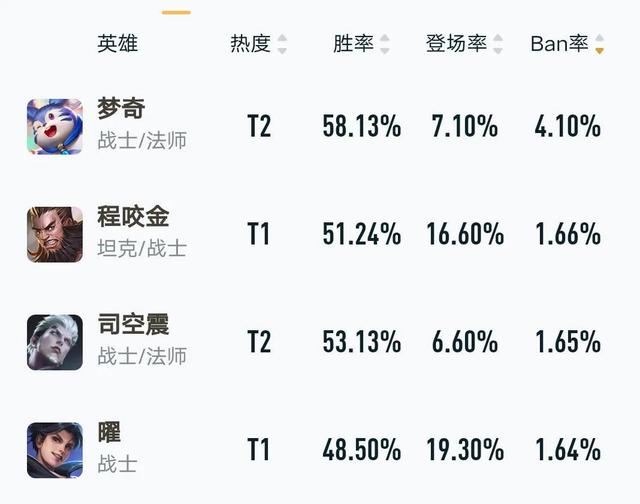 可能有些玩家会说这个禁用率不才1.64%吗,不是很高呀,相对于其他的英雄确实不是很高,但是它这款皮肤才刚刚上架一天,数据还在慢慢上升,再说了这个数据在所有的对抗路英雄当中已经是排行第四了。