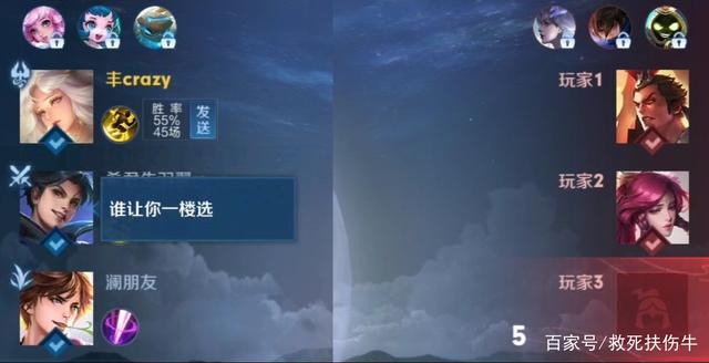 王者荣耀1-5楼的默认潜规则就是先选的可以随意挑位置,帮抢必须补位。那种又要抢位置,还不敢先选的,是真的自私,更过分的是往往叫他们亮战绩和牌子给自家队友一点信心,都是不肯发, 所以单排路人局的环境就是这么恶劣,后面不管这玩家战绩好不好,这态度都是投降的导火索。