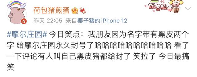 上图所示,这位网友发动态说自己的朋友在摩尔庄园里面的ID也有“黑?”二字,最后也被永久封号了。