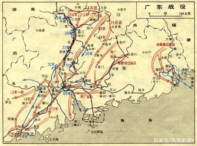 1949年11月,四野和二野进行广西战役,解放了粤桂边区和雷州半岛。