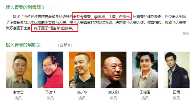 单单是《误入青春》的剧情简介就让人笑掉大牙,“西游五人组”在电影中自称是退休老戏骨偶然间认识了想参加艺术比赛的马天美,于是几个人一起合作让小女孩实现了自己“悟空梦”。