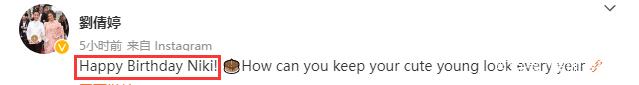 9月2日傍晚,前港姐冠军刘倩婷在社交网更新一则动态,Po文称“Happy Birthday Niki(生日快乐,周丽淇)”,并附上一个蛋糕的emoji表情符号。事实上,Niki周丽淇(周励淇)的42岁生日是上个月(8月)30日,想必是今次好姐妹久违聚首特意为其补办生日宴。