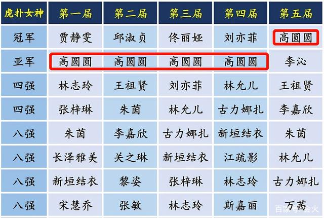至于她为什么一直是亚军,还是因为如果夺冠了,那么高圆圆便不能再参加下一届的比赛了,老哥们实在不舍得,才每次都留她做亚军。