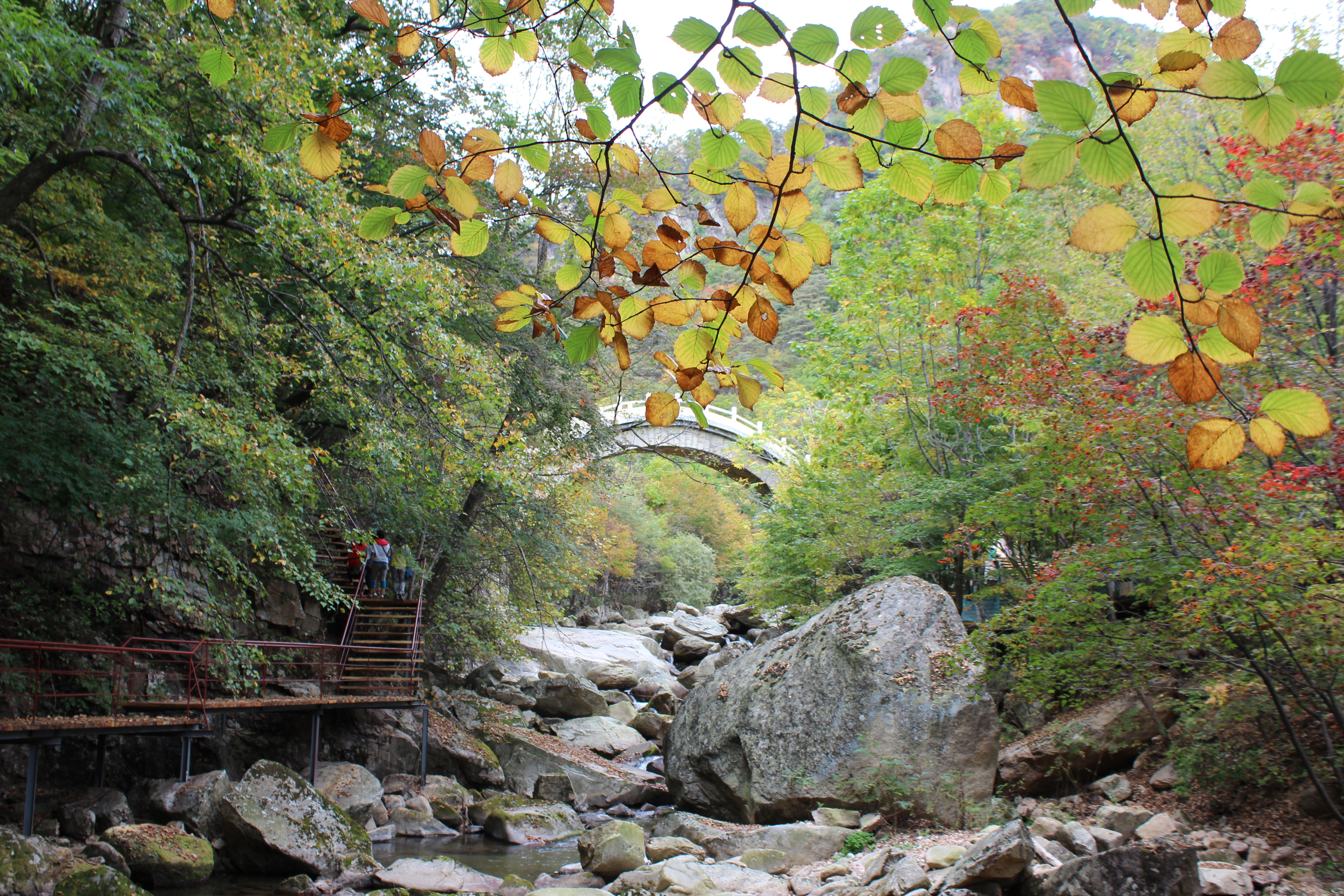 天桥沟位于辽宁省宽甸满族自治县西北部。天桥沟森林公园依山傍水,风景秀丽。它不仅不同于中国的传统景点五岳,也不同于长白山。四季景色分明,可谓一季一世界,四季四天。目前有莲花峰、玉泉顶、小月峰、红枫谷等四大景区72处旅游景点,其中东北抗日联军遗址20余处。