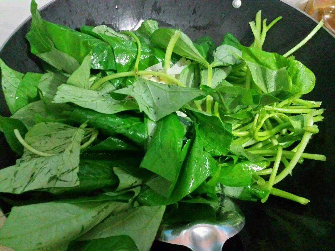 炒红薯叶前,先焯水,焯水后再炒。炸出来的红薯叶更绿更脆,炸的时间更短。因为炒的时间短,炒出来的红薯叶不会变黑,也不会太干太难嚼。也可以节省一些燃料。