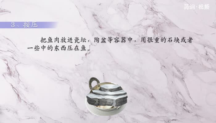 把鱼放在瓷缸、陶盆等容器里,用重石头或重的东西压住。如何用竹片把整条鱼拉直压一周?