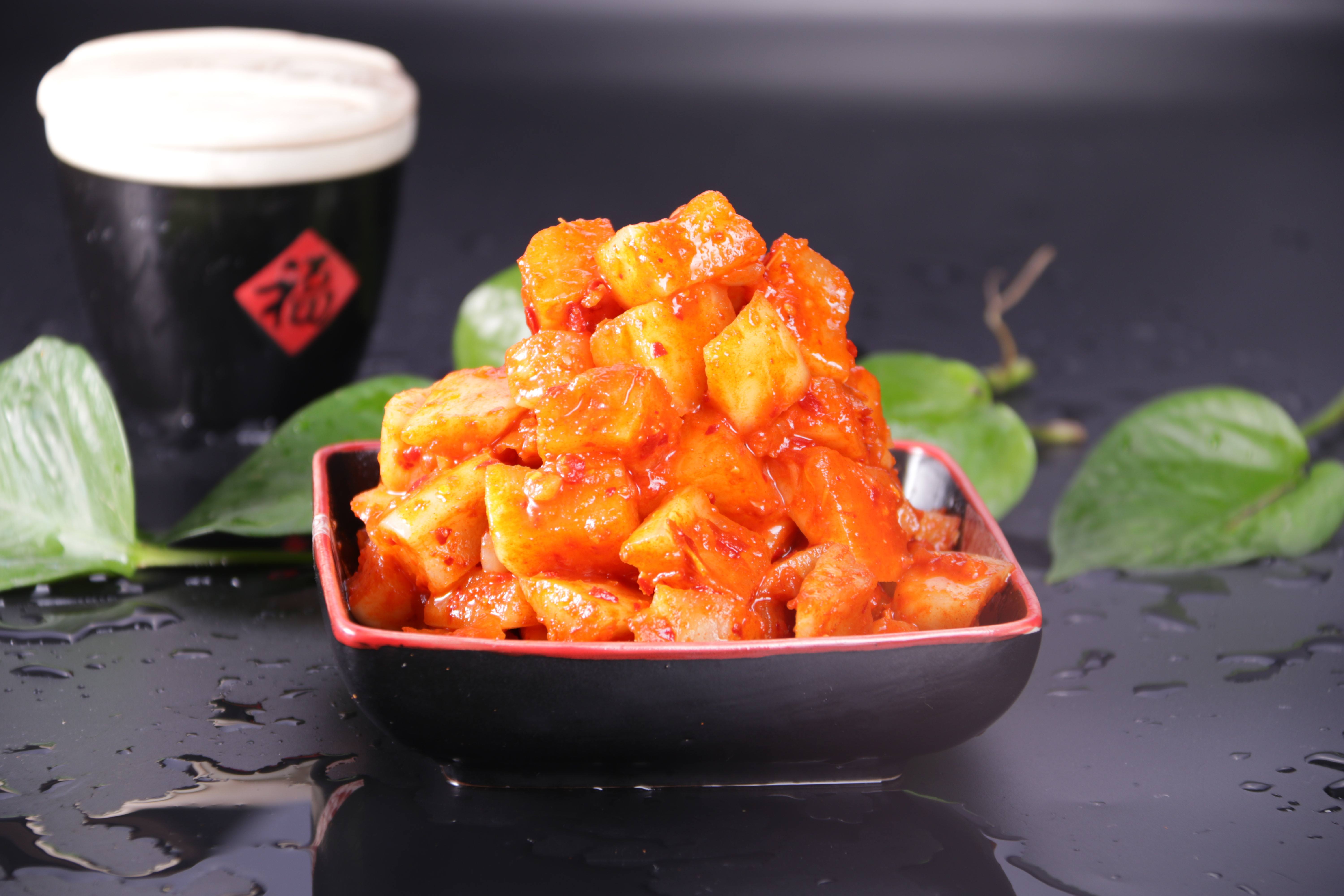 泡菜是韩国民族的特色。泡菜是韩国人自古以来就喜欢吃的固有民族副食,是一种独特的素菜。它是以白菜、萝卜等蔬菜为主要原料,以辣椒、葱、蒜、姜、水果、盐为佐料,经乳酸发酵制成的蔬菜加工品。