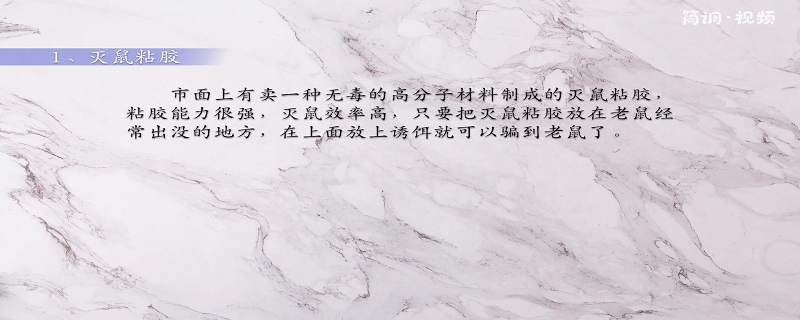 市场上有一种由无毒高分子材料制成的灭鼠剂粘合剂,粘合能力强,灭鼠效率高。只要把灭鼠胶放在老鼠经常出没的地方,放上诱饵就能骗过老鼠;