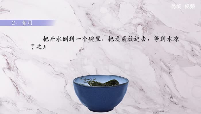 将开水倒入碗中,将发菜放入其中,待水冷却后,即可食用发菜。