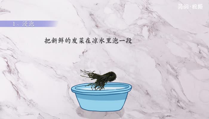 将新鲜发菜用冷水浸泡一段时间,将里面的脏东西泡出来;