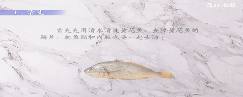 先用清水将黄花鱼清洗干净,去掉黄花鱼的鱼鳞,鳃和内脏一起去掉;
