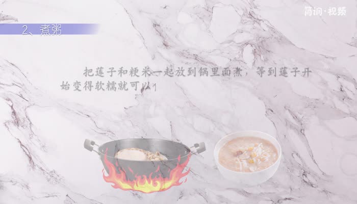 将莲子和粳米一起放入锅中煮至莲子软糯,即可食用。