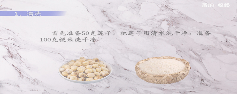 先准备莲子50克,用清水洗净,准备粳米100克洗净;