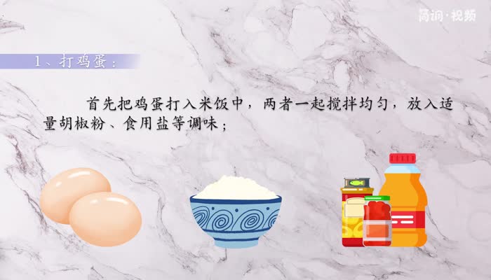 首先将鸡蛋打入米饭中,一起搅拌均匀,加入适量胡椒粉和食用盐调味;