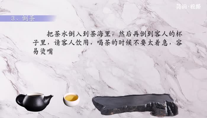 把茶倒进茶海,再倒进客人的杯子里,请客人喝。喝茶不要太着急,容易烫嘴。