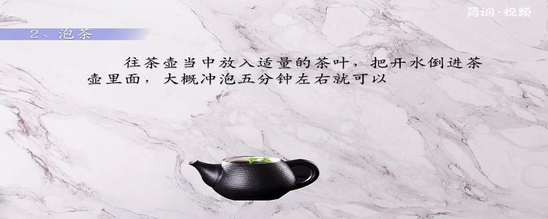 将适量茶叶放入茶壶中,将开水倒入茶壶中,冲泡五分钟左右。