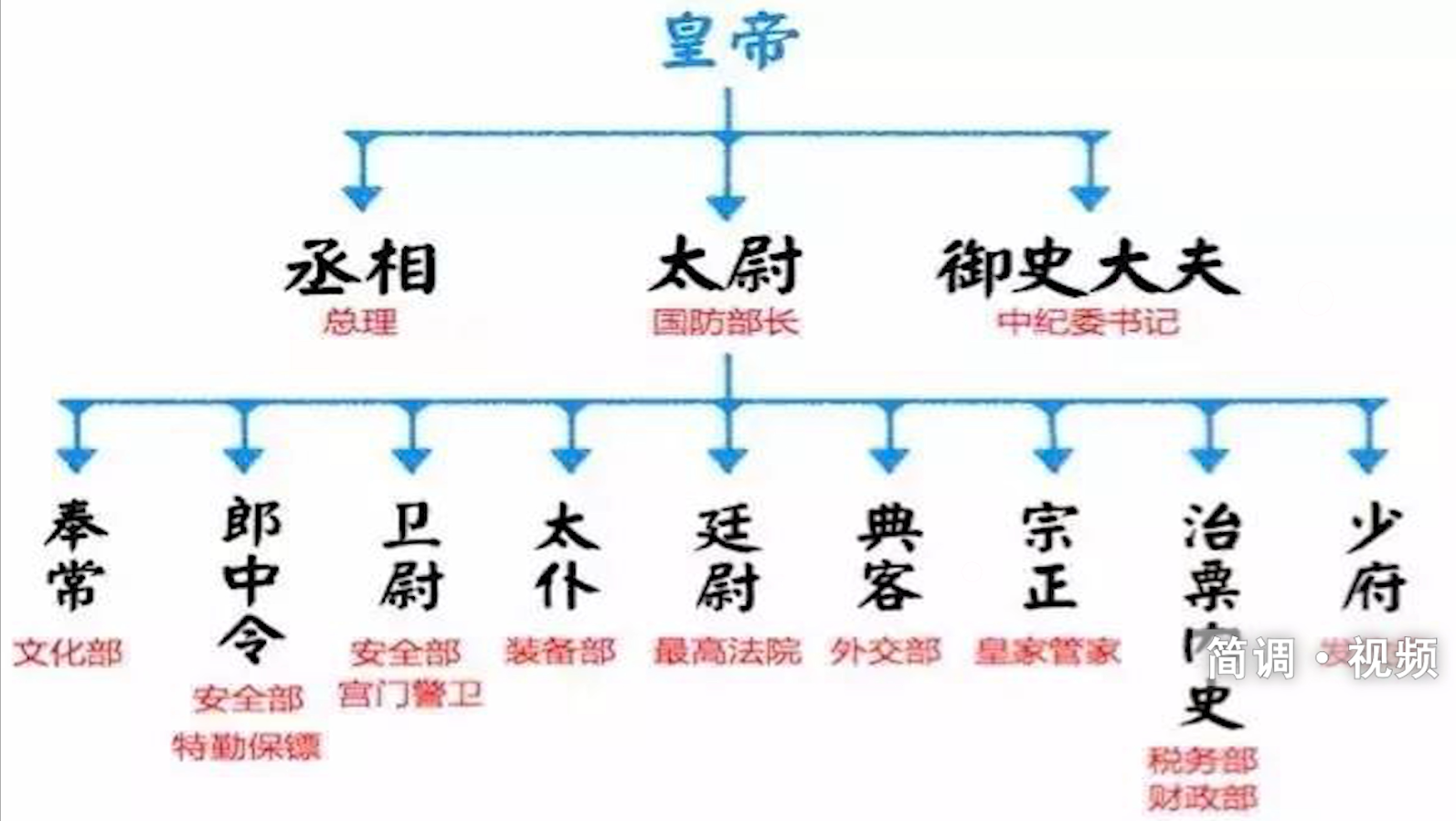 汉代封场改太常,郎中令名兴禄勋,典当人名大鸿胪,治粟内史名大司农。三公九卿的建立始于秦朝。
